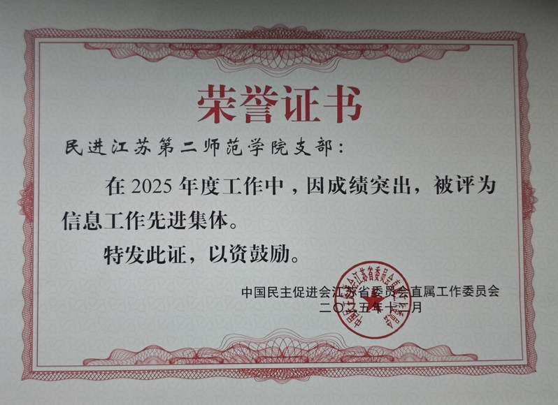 此次荣誉的获得,既是对支部过去一年在思想宣传、信息报送等工作中辛勤付出的肯定,也是对支部全体成员踔厉奋发、笃行实干的激励。未来,民进江苏第二师范学院支部将珍惜荣誉、再接再厉,立足高校特色与民进党派优势,在服务大局中主动担当,在履职建言中彰显作为,为推动地方教育事业发展与学校统一战线工作提质增效贡献更多力量。