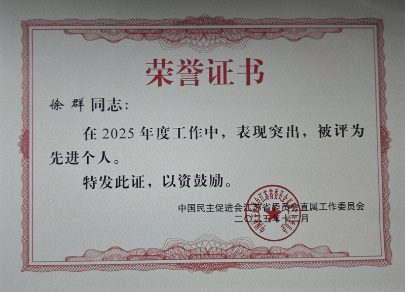 12月30日,中国民主促进会江苏省委员会直属工作委员会年度总结表彰大会顺利召开。会上,民进江苏第二师范学院支部凭借扎实的工作成效与突出的履职表现,一举斩获2025年度新闻宣传工作先进集体与2025年度信息工作先进集体两项殊荣;支部成员徐群同志因履职尽责、实绩显著,获评先进个人。